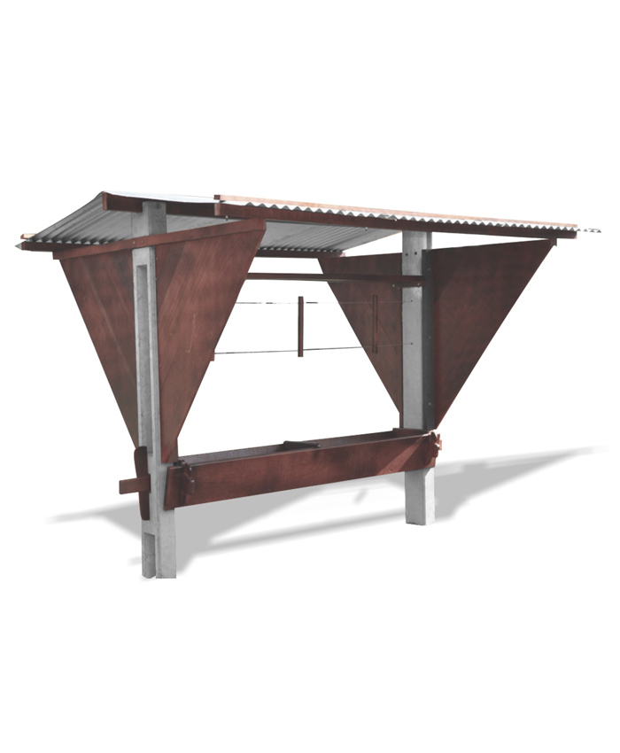 Os Cochos possuem cobertura em zinco, palanques de concreto usinado e são em madeira de lei. São fabricados em duas medidas e alturas, podendo ser 2,5 m e 5 m, com ou sem sistema Creep Feeding. Capacidade para 8 ou 16 animais.